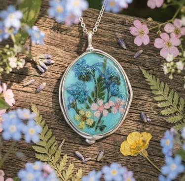 Handcrafted Earrings and pendants made with real flowers