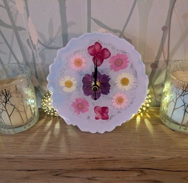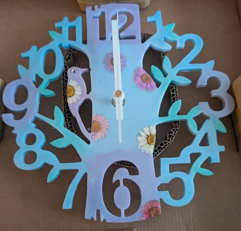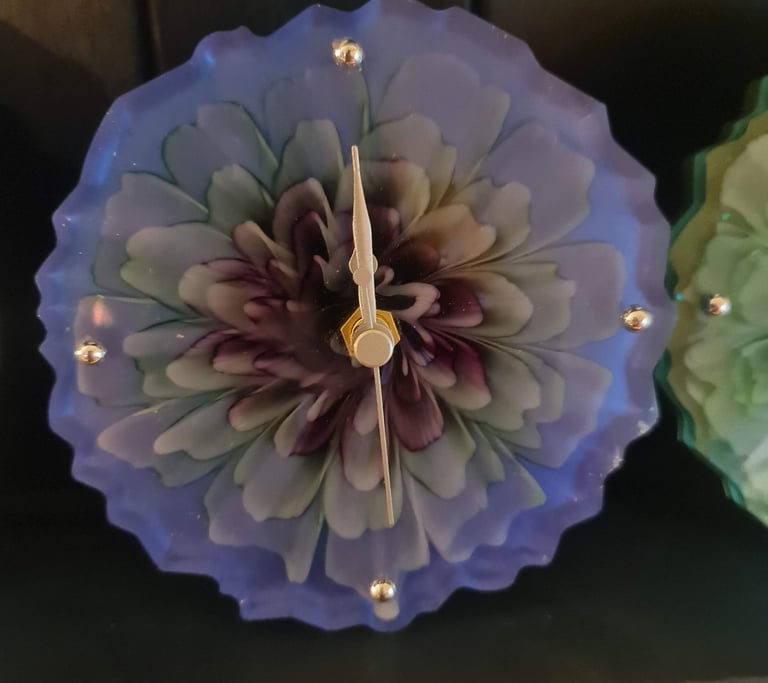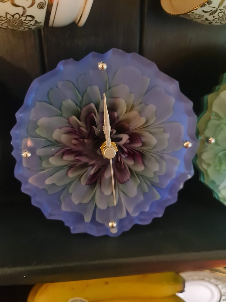 I purchased a resin clock for my mum's birthday and she was delighted with the colour, design and craftmanship of it. It looks stunning in her kitchen and matches her colour scheme. Can't thank Kathie and Trish enough for their hard work.